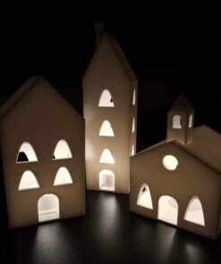 Die Teelicht-Häusergruppe Finnland bringt mit ihren klaren Linien und warmem Licht die ruhige Eleganz des Nordens in dein Wohnzimmer. Eine harmonische Kombination aus Schlichtheit, Design und Gemütlichkeit.