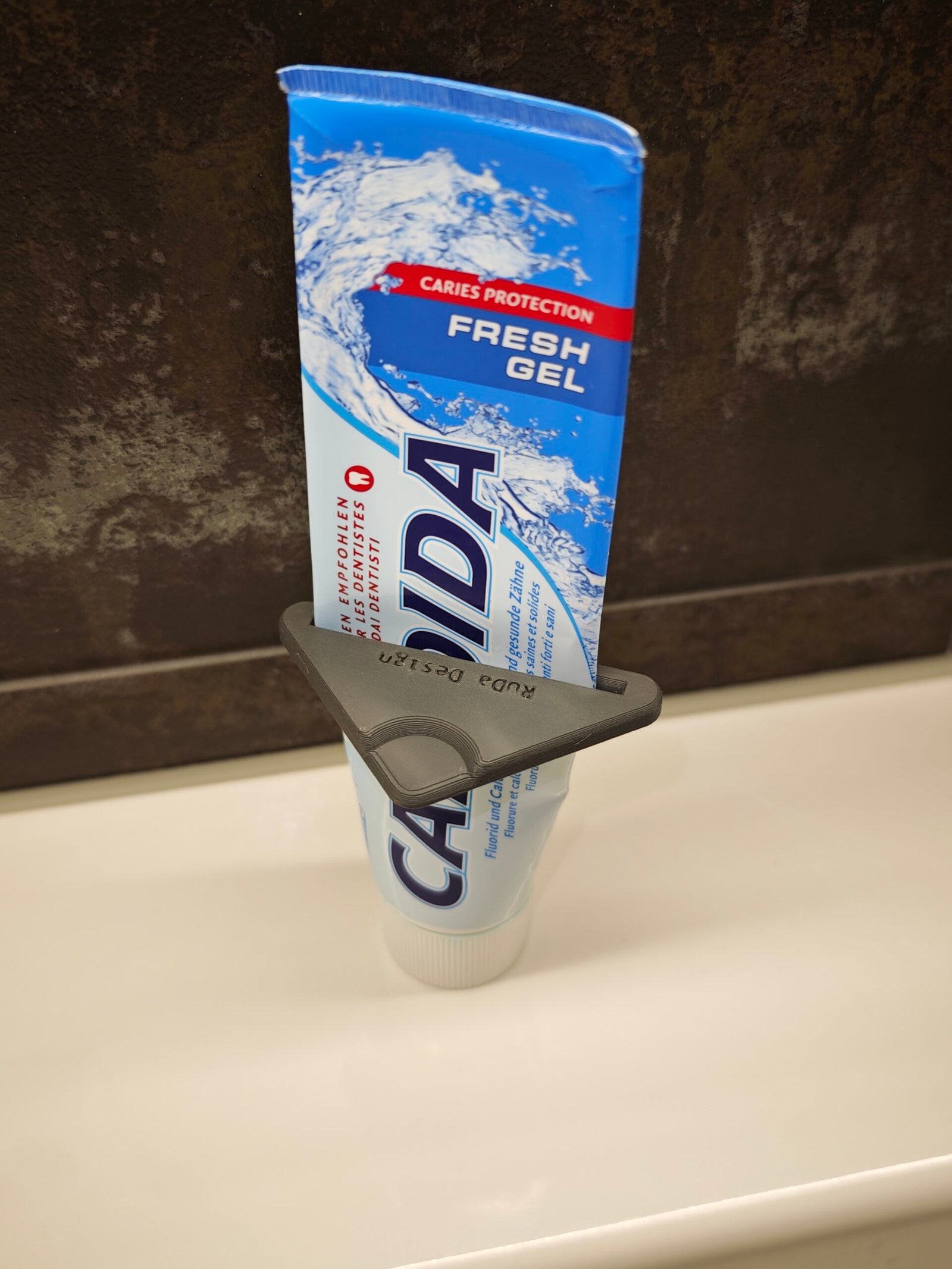 Mit Rudi bleibt keine Zahnpasta zurück: Hinten ansetzen, nach vorne ziehen – und schon drückt er die Zahnpasta sauber zur Öffnung. Praktisch, robust und perfekt für den Alltag.